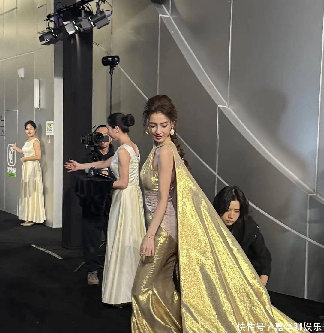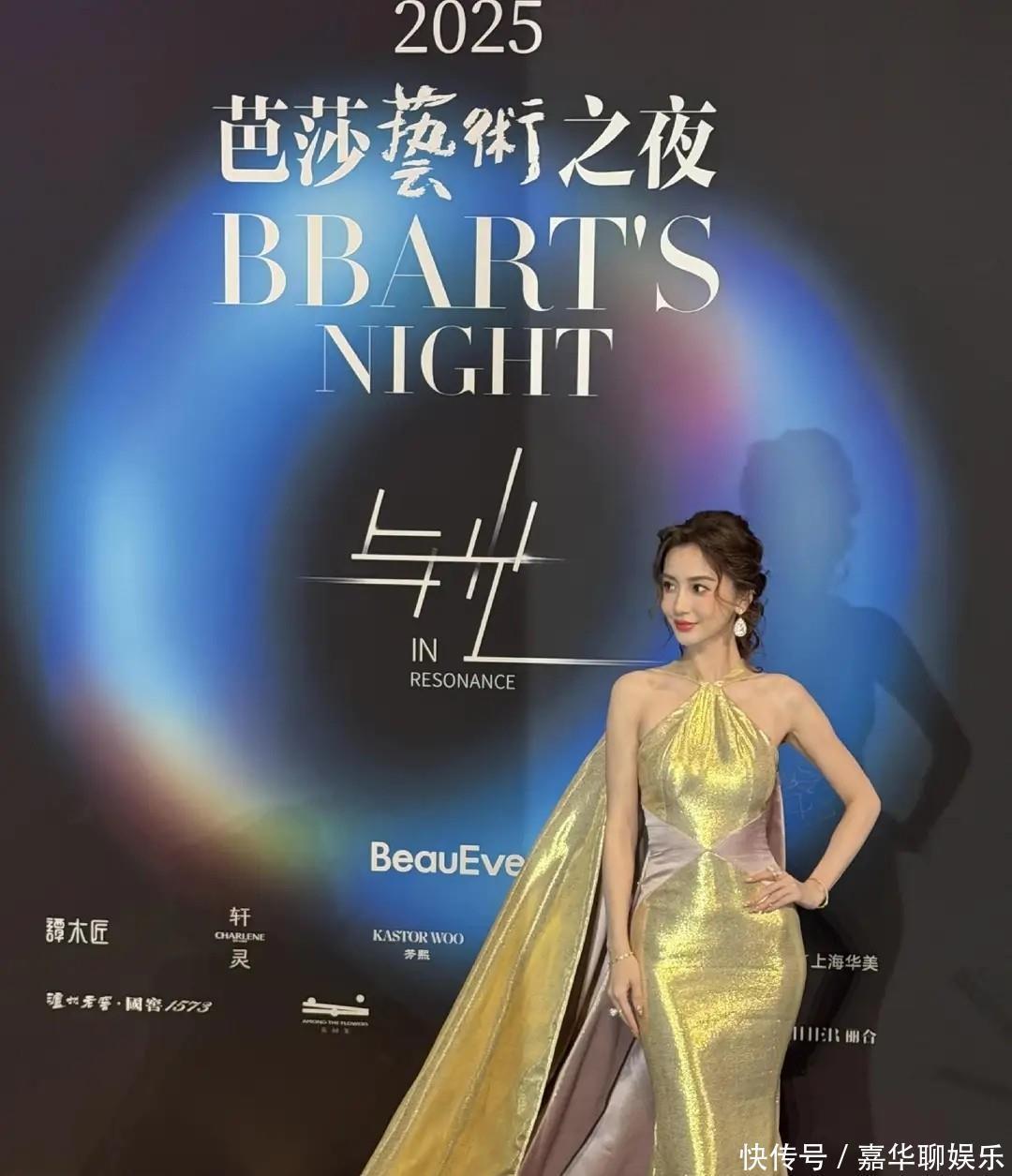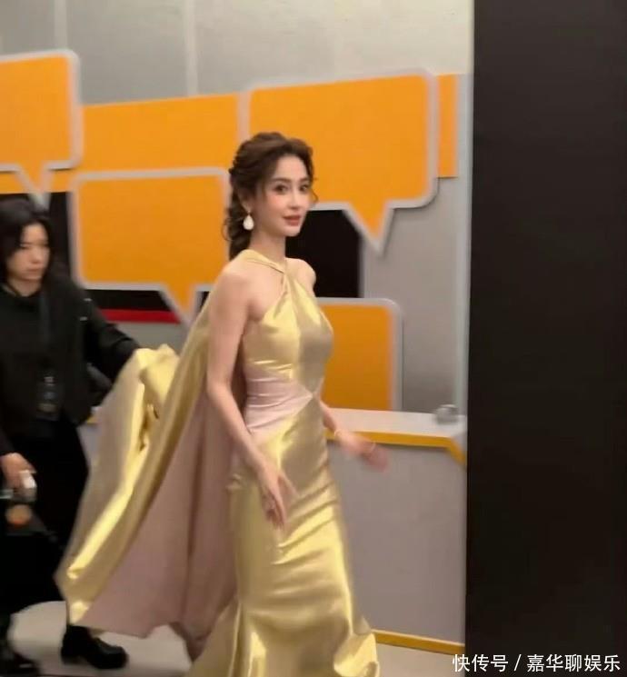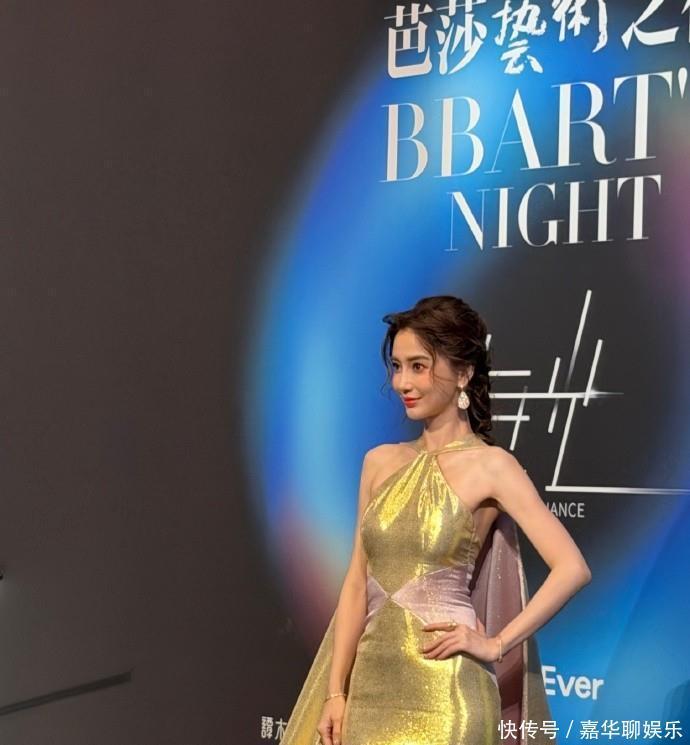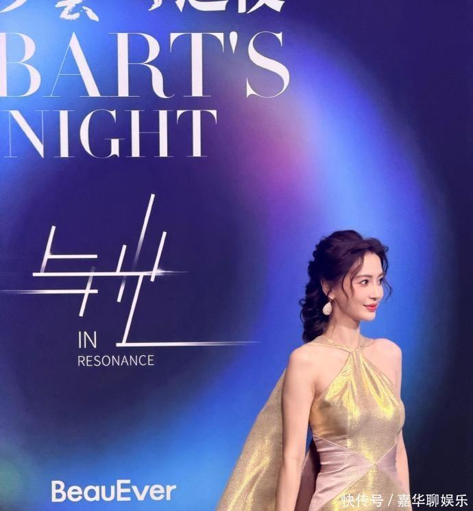 这次亮相艺术之夜,杨颖直接选择了一条黄金色的拖地礼服,开场就像自带灯光特效。挂脖披风的设计尽显高贵优雅,身姿挺拔,走路都带风。编发复古,还有点慵懒的味道,衬得皮肤跟白雪一样,这画面感,分明是行走的杂志封面。